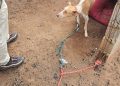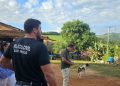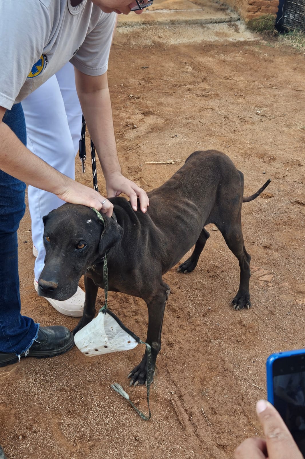 Ponte Alta – No mesmo dia a equipe da Divisão do Bem-Estar Animal (DIBEM) contatou os policiais para irem ao bairro Ponte Alta para outra averiguação de maus tratos contra cães. No local foram encontrados cinco animais, um em situação de desnutrição, preso com um enforcador que, por conta da tração, causou lesão no pescoço. Outro cão também apresentava quadro de maus tratos.