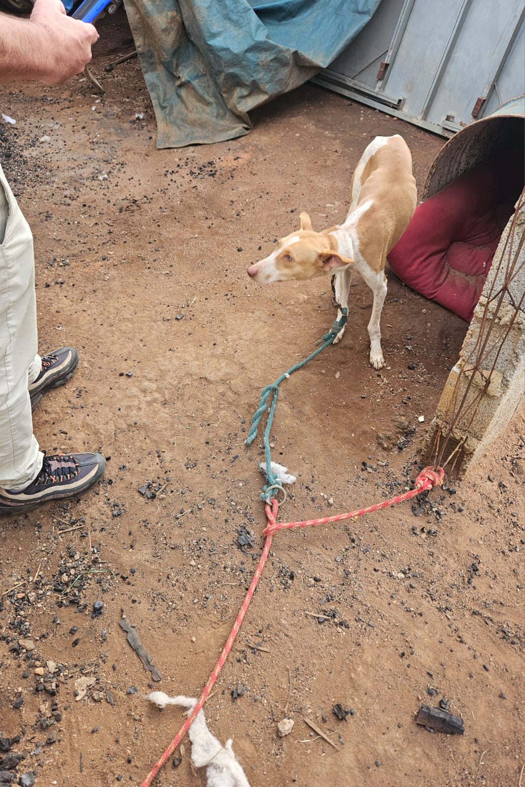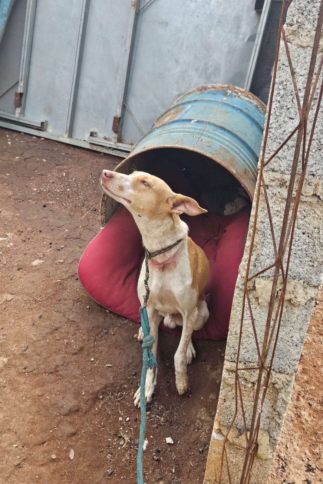 A primeira denúncia foi de uma cadela em estado de extrema magreza, amarrada a uma corda pequena, sem água ou comida, em uma residência no Campo Novo. A equipe da CPJ chegou ao local e uma das moradoras autorizou a entrada dos policiais para que a denúncia fosse averiguada.