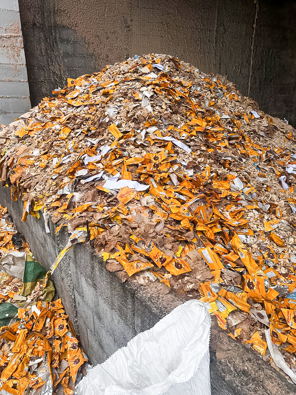 mos alimentícios utilizadas em larga escala industrial, o que descaracterizou o descarte residencial e indicou origem comercial. A partir dessa constatação, foi realizada uma apuração no entorno, que levou os fiscais até a fábrica de ração situada nas proximidades. Durante a vistoria na unidade, foi confirmada a utilização e o armazenamento dos mesmos produtos cujas embalagens haviam sido encontradas descartadas irregularmente.