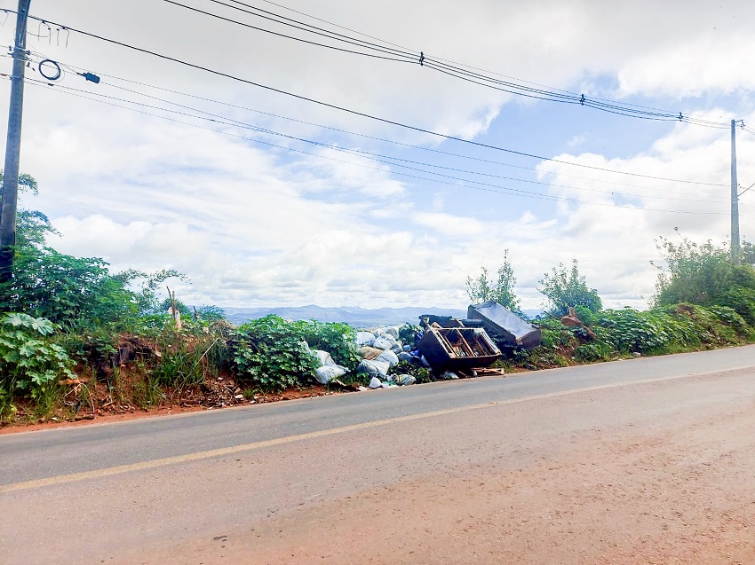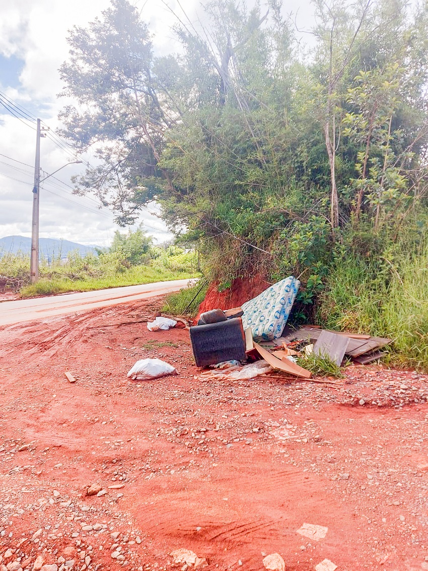 O primeiro flagrante ocorreu na última semana, na segunda-feira (19), quando sofás, entulhos de obra e outros resíduos foram encontrados descartados às margens da Estrada Municipal Antônio Moreno, nas proximidades do bairro Campo Novo. Dois pontos estavam poluídos — um em frente à entrada de uma propriedade e outro à beira da via —, sendo que parte do material apresentava risco de cair em um barranco. A região já sofre frequentemente com o descarte irregular de resíduos domésticos e entulho, principalmente por se tratar de uma área mais afastada.